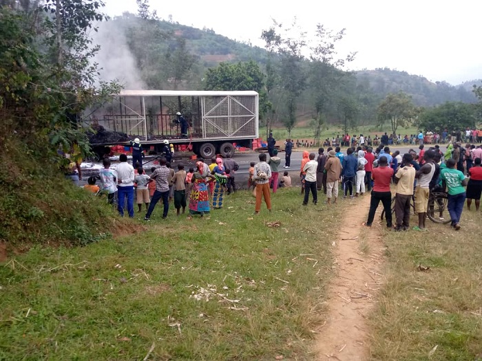 Abaturage bari begereye umuhanda, ahabereye iyo nkongi, ngo bakuwe umutima n’urusaku bumvise rw’amapine yaturitse ubwo yari amaze gufatwa n’umuriro.