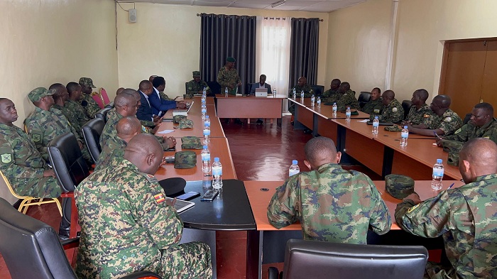 Mu ijambo ry’ikaze, Umuyobozi w’ingabo mu Ntara y’Amajyaruguru, Brig Gen Frank Mutembe, yashimiye itsinda ry’ingabo za Uganda zitabiriye iyo nama, ashimangira akamaro k’imikoranire myiza ijyanye n’imicungire y’imipaka ihuza ibihugu byombi.