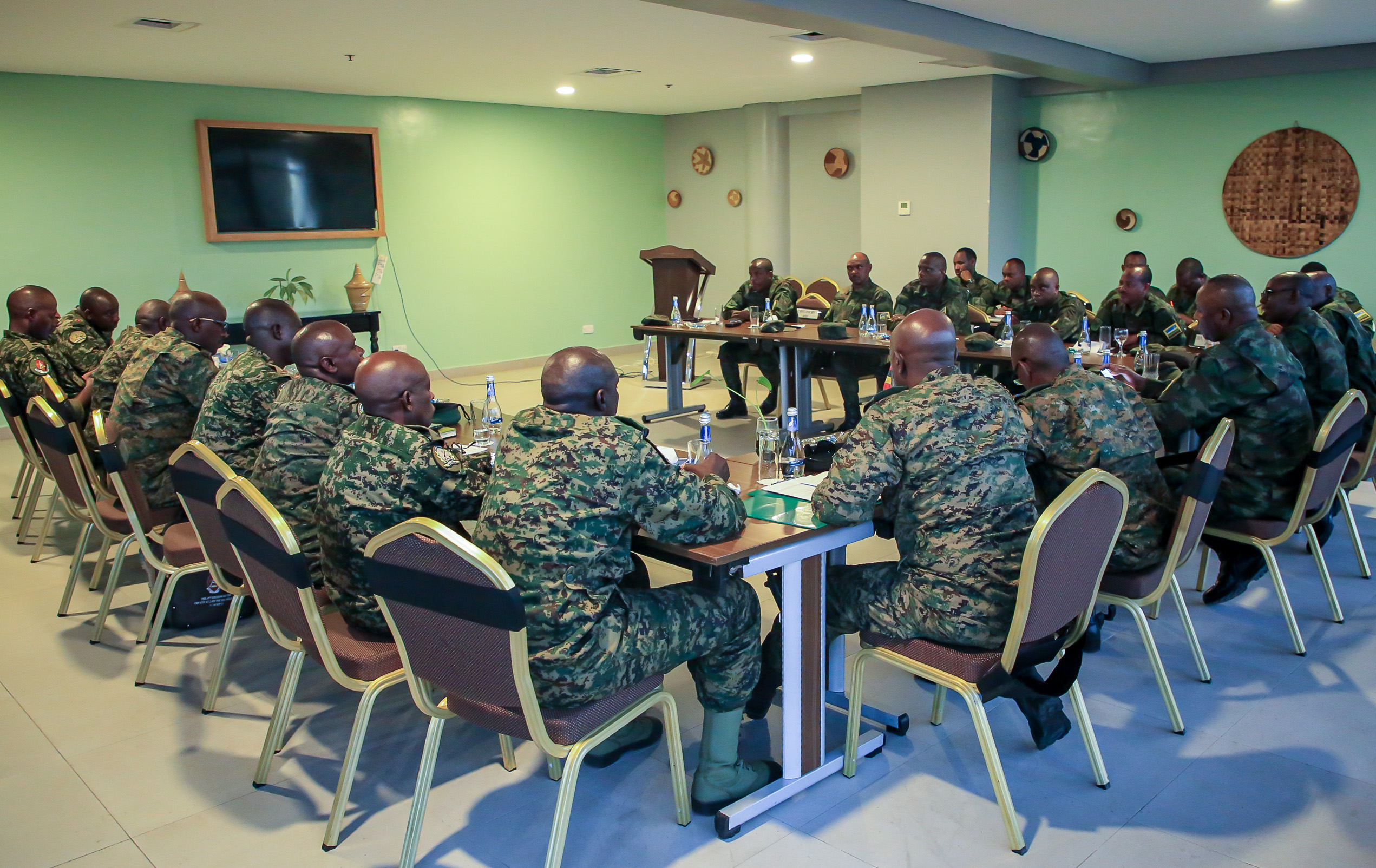 Maj Gen Vincent NYAKARUNDI, yasabye abitabiriye iyo nama gukomeza umubano wihariye usanzwe urangwa hagati y’ibihugu byombi kandi bagafatanya gukemura ibibazo by’umutekano kuko abasirikare ku mpande zombi boherejwe ku mipaka ibihugu byombi bisagiye.