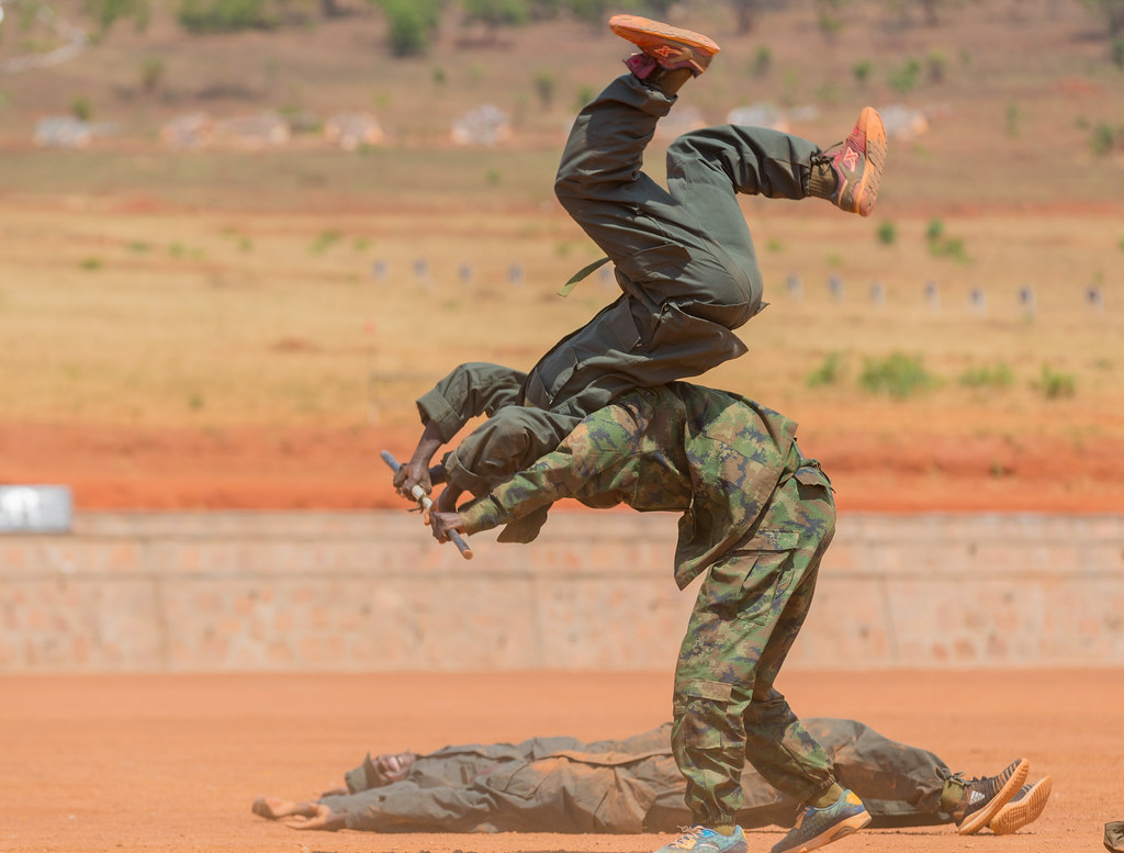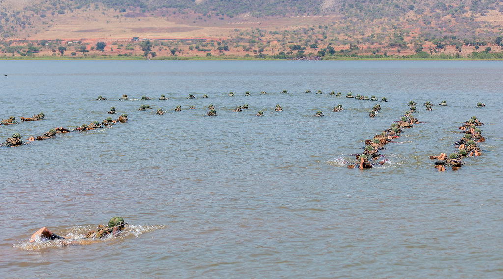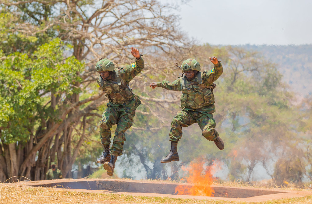 Umugaba Mukuru w’Ingabo z’u Rwanda, Gen Jean Bosco Kazura ari mu Bayobozi b’Igisirikare bakurikiranye imyitozo ya nyuma yakorewe ku butaka no mu mazi, ashimira abahungu n’abakobwa bagaragaje ubumenyi mu gukoresha intwaro n’imibiri yabo.