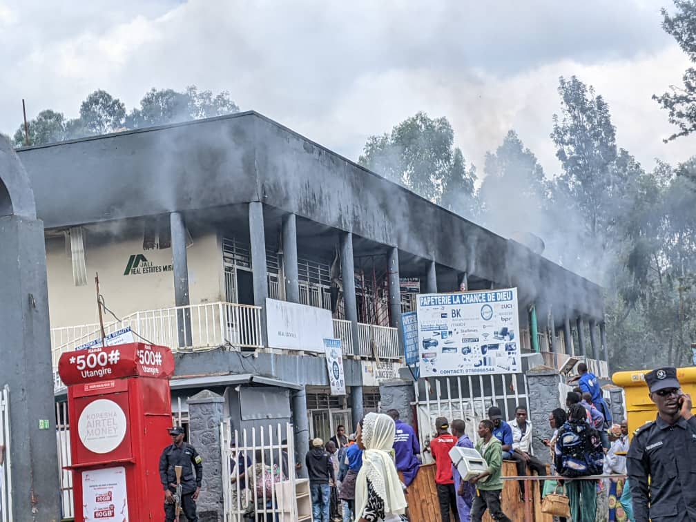 Inyubako ikorerwamo ubucuruzi iherereye muri Gare ya @Musanze yafashwe n'inkongi y'umuriro hahiramo ibintu bitandukanye. Bamwe mu bacuruzi bakorera hafi y’iyi gorofa, bakeka ko uyu muriro waba waturutse kuri gaz yari muri imwe mu maduka. @Rwandapolice yahise ihagoboka ubu ikaba… pic.twitter.com/tjOn0UOWyy