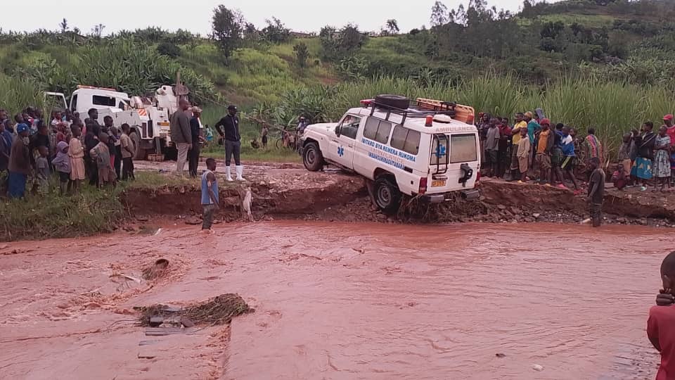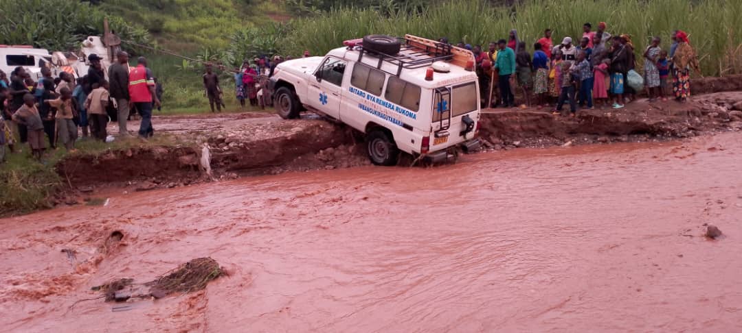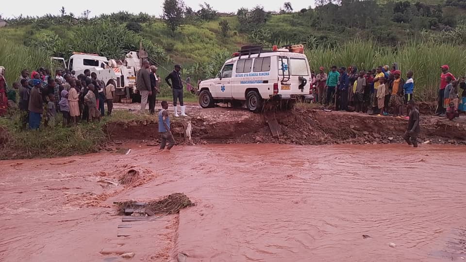 Imbangukiragutabara (Ambulance) yo ku bitaro bya Remera-Rukoma, yari itwaye umurwayi iva ku kigo nderabuzima cya Kabuga, imujyanye kuri ibyo bitaro, yatwawe n’amazi y’umugezi uri hagati y’Imirenge ya Runda na Ngamba.