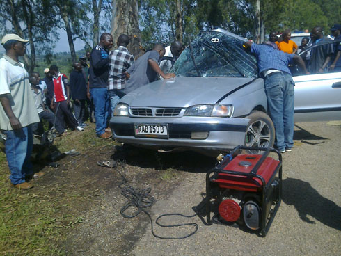 Imodoka bose uko ari batatu barimo yangiritse cyane ku buryo idashobora kuzongera gusubira mu muhanda kuko ubwo batabaraga uwari wayihezemo byabaye ngombwa ko bayikatagura hagamijwe kurengera ubuzima bwe.
