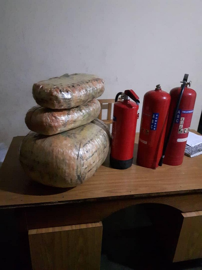 Polisi ikorera mu Karere ka Rubavu yatesheje abagabo babiri barimo kwinjiza mu gihugu urumogi, bari barushyize mu byuma bitatu byifashishwa mu kuzimya inkongi z’umuriro (fire extinguisher cylinders). Baruteshejwe tariki ya 10 Nzeri, bari mu Murenge wa Gisenyi mu Kagari ka Gisenyi mu Mudugudu wa Nengo.