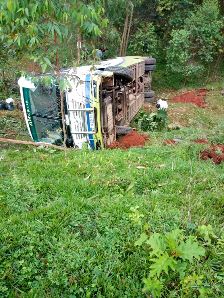Ababonye iyi mpanuka bavuze ko yatewe n’imodoka ya Fuso yibye umuhanda maze umushoferi wa RITCO akayihunga, maze kubera n’urume rwo mu byatsi, ihita inyerera iragwa.