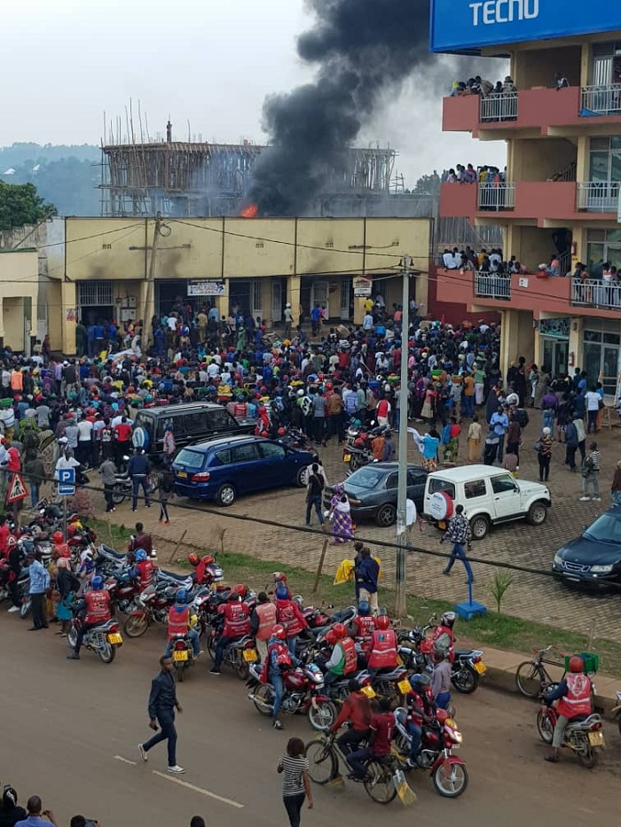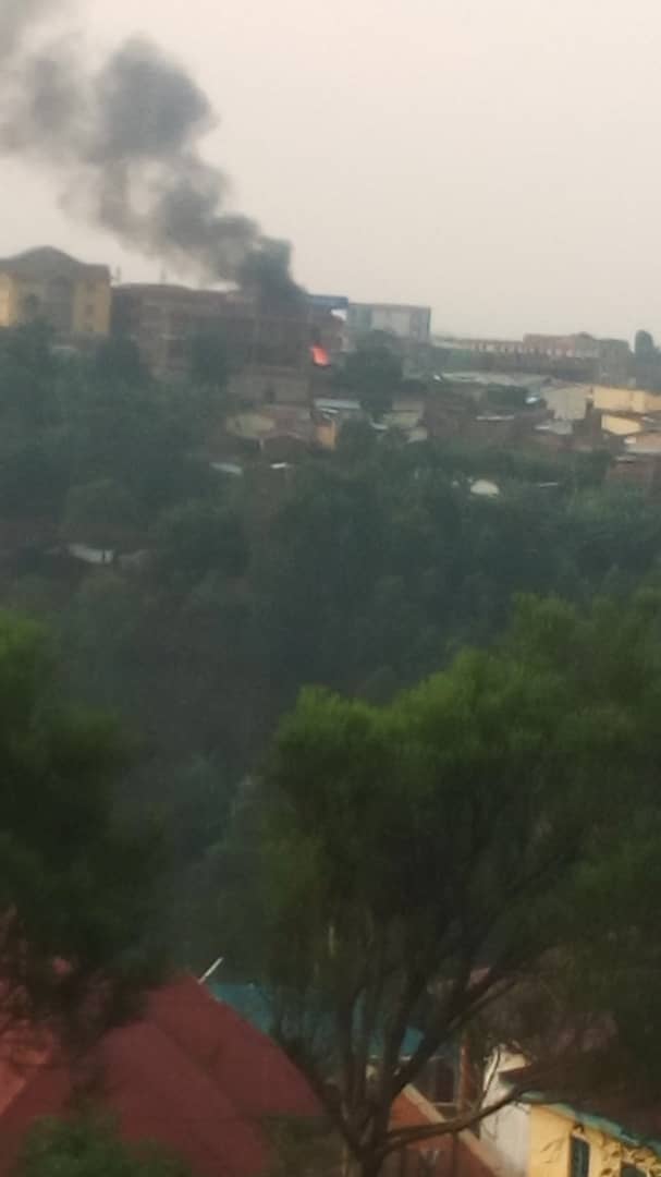 Inyubako iherereye imbere y’isoko rya Kamembe mu mujyi wa Rusizi yafashwe n’inkongi y’umuriro ku gicamunsi cyo kuri uyu wa mbere tariki 02 Nzeri 2019.