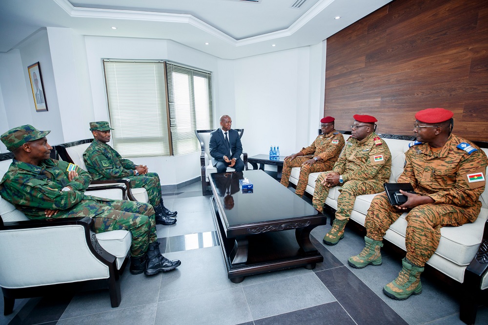 Umugaba mukuru w’ingabo za Burkina Faso, Brig Gen Célestin SIMPORE n’intumwa ayoboye, yakiriwe na Minisitiri w’Ingabo w’u Rwanda, Juvenal Marizamunda n’Umugaba Mukuru w’Ingabo z’u Rwanda, Lt Gen Mubarakh Muganga.