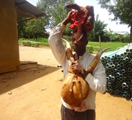 Mugabarigira Jean bahimba Mironko ari mu maboko ya polisi nyuma yo gufatirwa iwe mu urukerera rwa tariki 12/04/2012 ari kubaga inka ya Mutsindashyaka Joel utuye mu Kagali ka Mbyo umudugudu wa Kabeza.