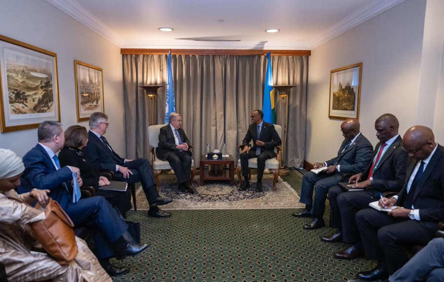 Perezida Kagame yaganiriye na Antonio Guteres ku iterambere ry’imikoranire ya UN n’u Rwanda, banungurana ibitekerezo ku ngamba za Politiki zafatwa mu gukemura ibibazo by’umutekano mucye mu Burasirazuba bwa Congo, n’uburyo abarebwa n’ibyo bibazo bahurira mu nzira y’ibiganiro, ngo bashakire hamwe ibisubizo byageza ku mahoro arambye.