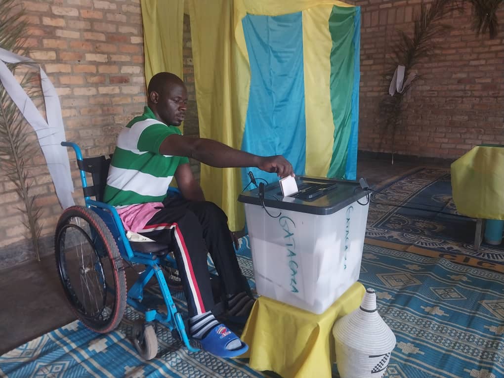 Yagize ati “Mwabonye ko abafite ubumuga b’ingeri zose, ari abafite ibibazo by’ingingo, ari abafite ibibazo byo kutabona, ibibazo byo kutavuga, baje gutora kandi bitabiriye ari benshi. Wabonye ko abaza ku tugare binjira mu cyumba cy’itora no mu bwihugiko bagatora nta ngorane kuko twahateguye mu buryo bwihariye. Twateguye n’abafasha abatavuga ndetse n’abatabona ku buryo babasobanurira ibyo bakenera kumenya, bityo na bo bakihitiramo umuyobozi bifuza.”