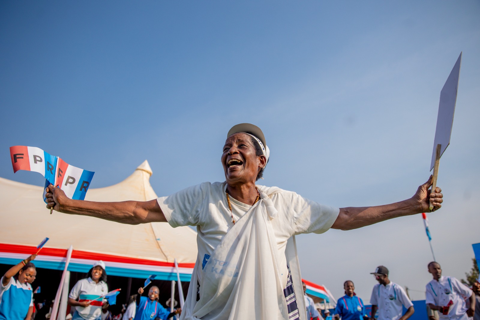 Musanabera Beatrice w’imyaka 70 y’amavuko avuga ko yabyutse saa cyenda z’ijoro kugira ngo adakererwa kugera aho bamamariza umukandida wa RPF-Inkotanyi mu Karere ka Bugesera kuri site ya Kindama.