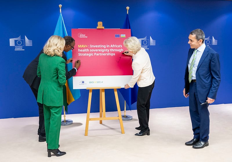 Ni inkunga yatanzwe hagamijwe gushyigikira gahunda yo gukorera inkingo muri Afurika, ikaba ikubiyemo miliyoni 40 z’amayero (hafi miliyari 70Frw) yagenewe u Rwanda mu gushyigikira urugendo rwo gukora inkingo n’ibindi bikoresho by’ubuvuzi.