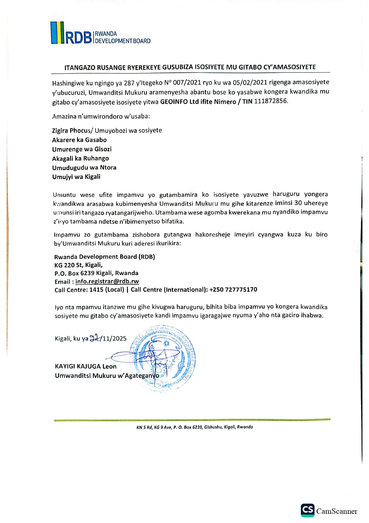 Itangazo rusange ryerekeye gusubiza isosiyete mu gitabo cy’amasosiyete