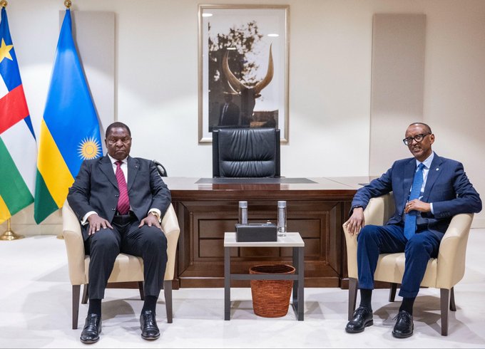 Ibiro by’Umukuru w’Igihugu, Village Urugwiro, bibinyujije ku rubuga rwabyo rwa X, byatangaje ko Abakuru b’ibihugu byombi bahuye ku mugoroba wo ku Cyumweru tariki 23 Ugushyingo 2025, baganira ku ngingo zitandukanye zirimo ubufatanye busanzweho, burimo ubutumwa bw’Ingabo z’u Rwanda muri Santrafurikika, aho hari izagiyeyo mu butumwa bw’Umuryango w’Abibumbye kuva mu 2014, hakaba n’iziriyo ku bw’amasezerano y’ibihugu byombi.