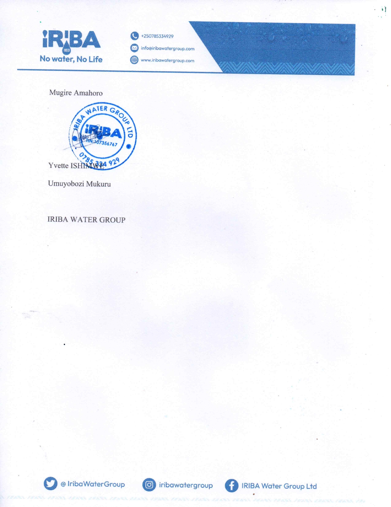 Ubutumire mu nama y’abafatanyabikorwa ba Iriba Water Group