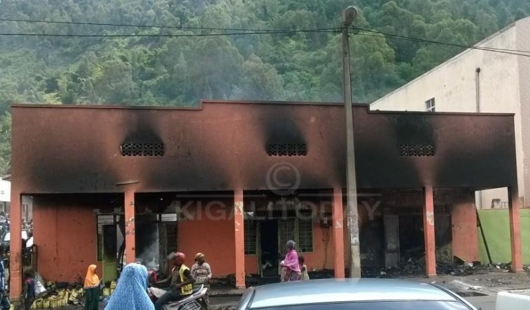Inyubako y’imiryango itatu y’ubucuruzi iri mu Karere ka Rubavu, yibasiwe n’inkongi y’umuriro ibicuruzwa byari birimo birakongoka.