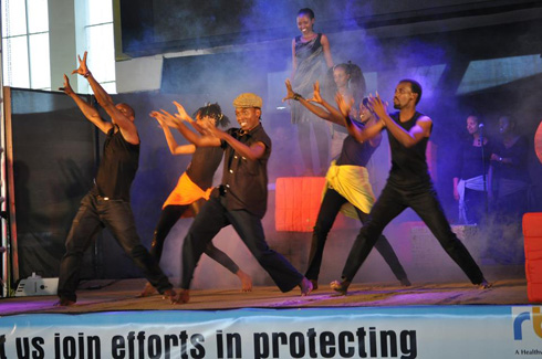 Mani Martin na Massamba bibumbiye muri Art For Peace, basusurukije urubyiruko rw’i Kayonza kuri uyu wa Gatanu tariki 31/05/2013, muri gahunda ya Youth Connekt yo muri kwezi kwahariwe urubyiruko.