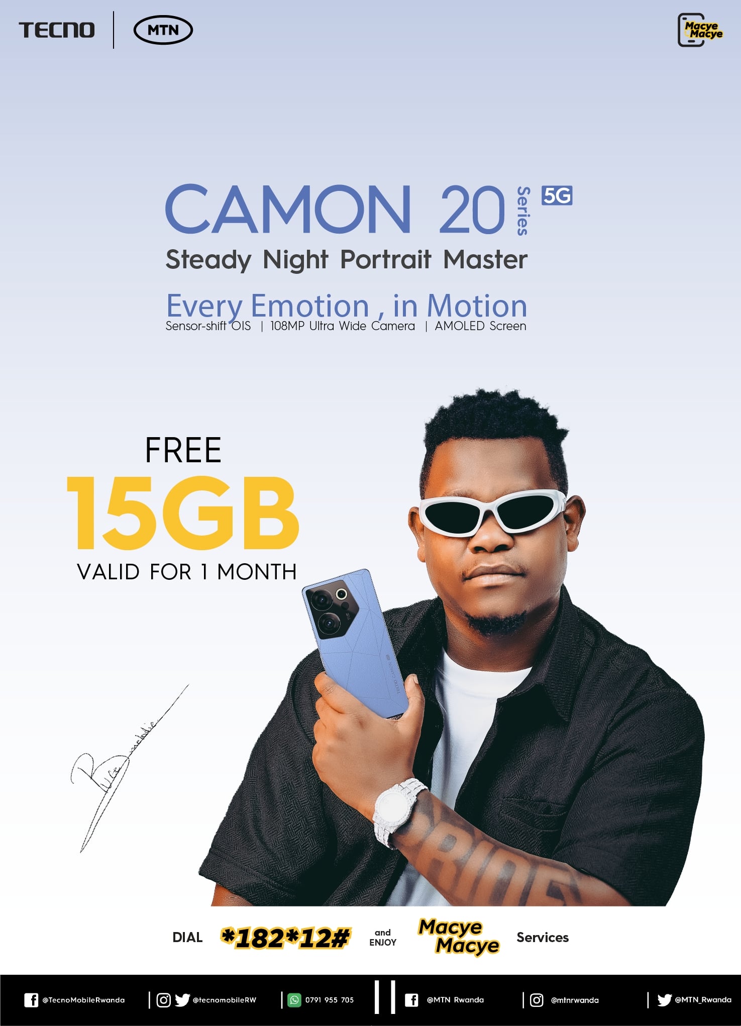 Ikigo TECNO gicuruza ibikoresho by’ikoranabuhanga hirya no hino ku Isi, ku wa Kane tariki 25 Gicurasi 2023 cyamuritse telefone zikoresha Internet igezweho ya 5G. TECNO kandi yanerekanye umuhanzi Bruce Melodie uzazibera Ambasaderi akazajya azamamaza.