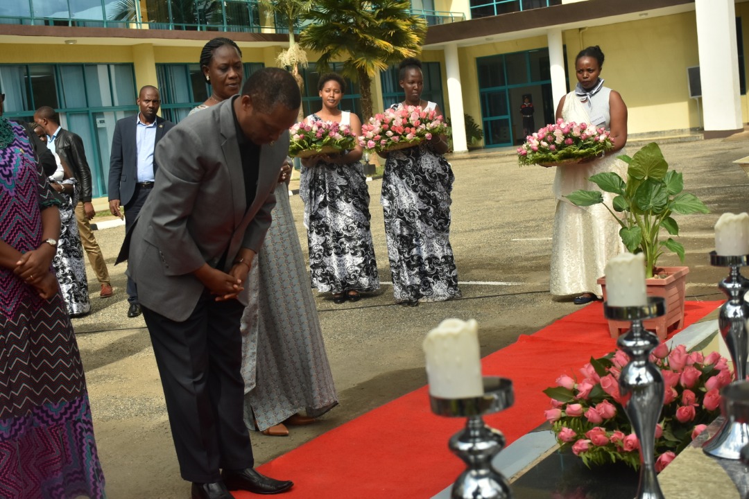Uyu muhango wabimburiwe no gushyira indabo ku rwibutso ruri aho izi nzego zikorera ku Kacyiru ndetse hanacanwa urumuri rw’ikizere, byakozwe na Minisitiri w’Ubutegetsi bw’Igihugu Prof Shyaka Anastase, Minisitiri w’Abakozi ba Leta n’Umurimo FanFan Rwanyindo, Umunyamabanga wa Leta ushinzwe imibereho myiza Dr. Mukabaramba Albera, Umuyobozi urwego rw’igihugu rw’abinjira n’abasohoka Lt Col Francois Regis Gatarayiha n’abandi bayobozi; Ndetse n’imiryango ifite ababo bazize Jenoside bakoreraga MINIFOP, MINITRASO na MININTER.