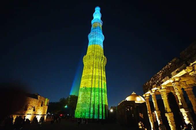 Umunara wa Qutub Minar ukikijwe n’izindi nyubako za kera ziranga imyemerere n’imico by’Abahinde kuva mu myaka ya kera, hakaba ari ahantu hasurwa na ba mukerarugendo benshi baturutse hirya no hino ku Isi.