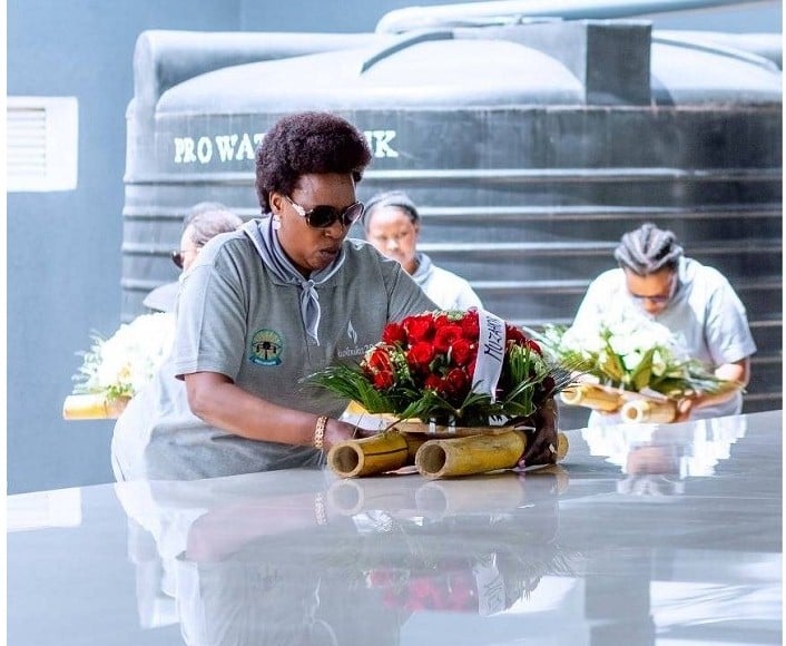 Abakozi b’Ikigo cya Gisirikare cy’Ubwishingizi ku Ndwara (MMI), bibutse ku nshuro ya 29 Jenoside yakorewe Abatutsi mu Rwanda mu 1994, igikorwa cyabereye ku rwibutso rwa Jali mu Murenge wa Jali, mu Karere ka Gasabo.