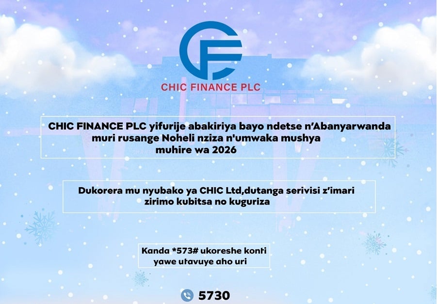 CHIC Finance PLC yifurije abakiriya bayo n’Abanyarwanda muri rusange Noheli nziza n’umwaka mushya muhire wa 2026
