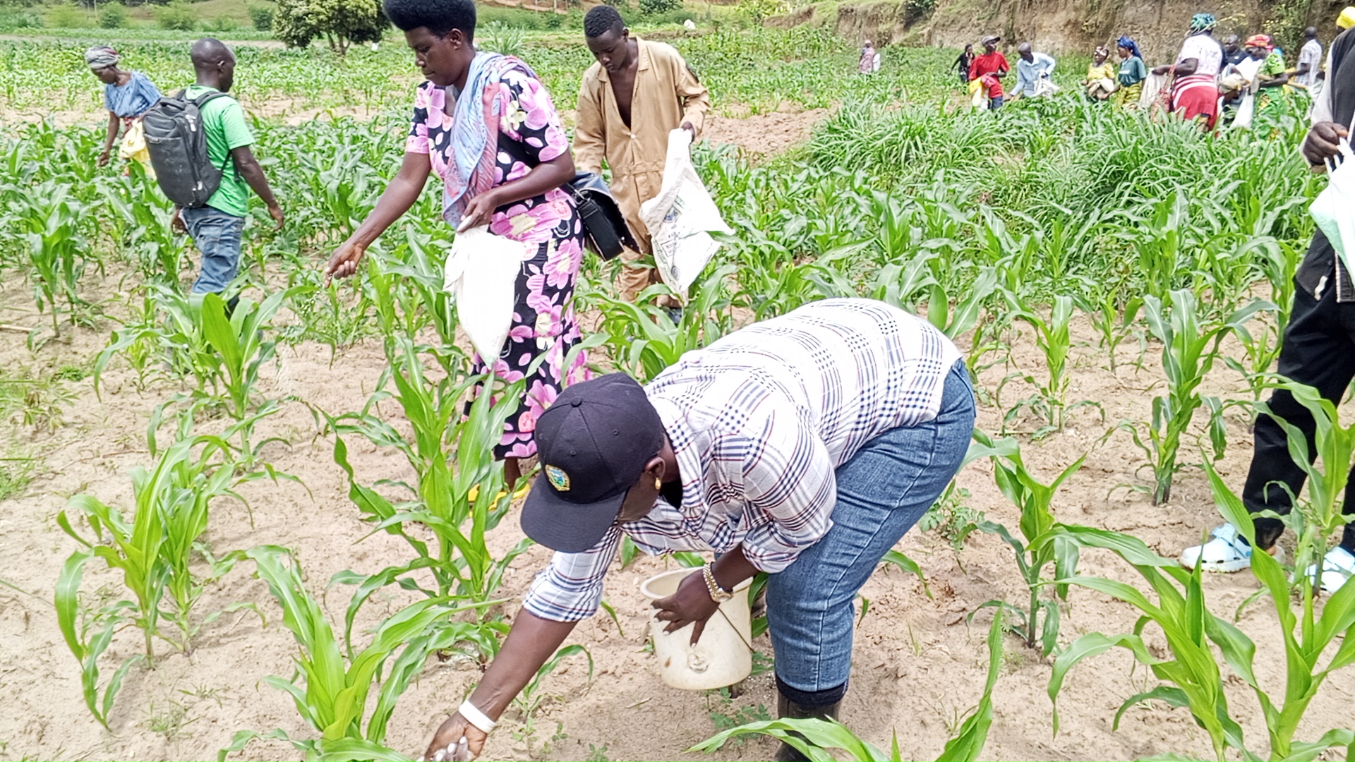 Abahinzi b’ibigori bahinga mu byanya bigega by’ibiribwa byatoranyijwe mu Karere ka Muhanga, barishimira kuba bahawe ifumbire yo mu bwoko bwa DAP yo kubagaza, hagamijwe kongera umusaruro.