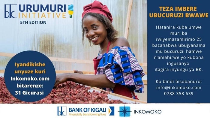 Banki ya Kigali n’Ikigo Inkomoko bivuga ko muri uyu mwaka wa 2021 abantu bose bafite ubucuruzi bugikeneye gutera imbere bahamagariwe kwandika bitabira irushanwa rya BK-Urumuri.