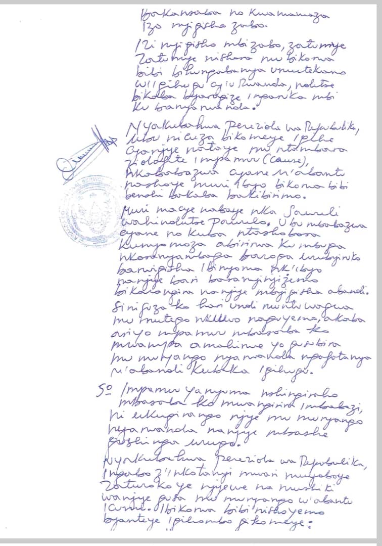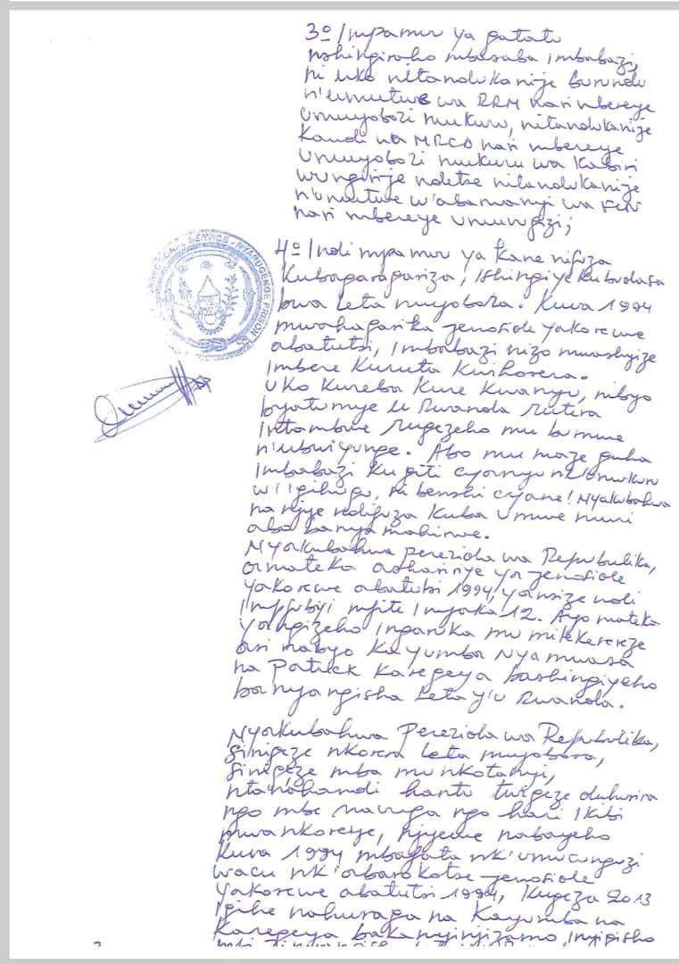Ibaruwa Nsabimana Callixte yanditse asaba imbabazi: