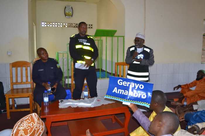 Kuri uyu wa gatanu (witwa ijumaa), umunsi ukomeye ku Bayisilamu kuko ari wo bakoreraho amasengesho arambuye, Polisi y’u Rwanda yagiye mu misigiti itandukanye yo mu Rwanda kwigisha ’Gerayo amahoro’.
