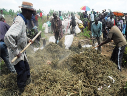 Mu mukwabu wakozwe mu murenge wa Kigarama wo mu karere ka Kirehe, polisi yafashe litiro 150 za Kanyanga ndetse n’ibiro 733 by’urumogi maze bitwikirwa mu ruhame imbere y’abaturage, polisi n’ubushinjacyaha.